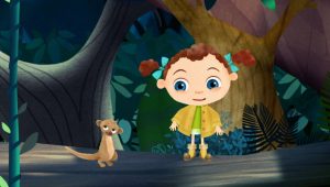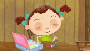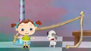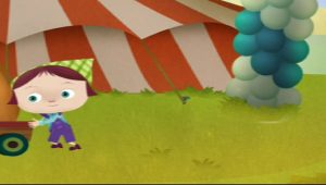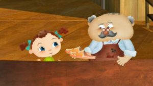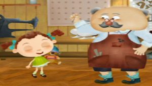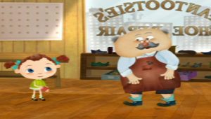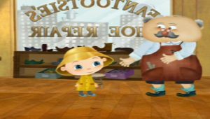” فراني ” التي تبلغ من العمر خمسة أعوام ونصف تجرب ارتداء حذاء في متجر إصلاح الأحذية الخاص بجدها، والذي ينقلها إلى وجهات مختلفة حول العالم