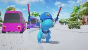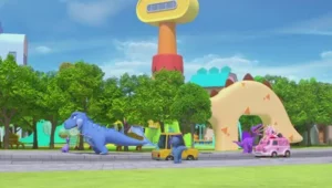 نعلم أن الديناصورات انقرضت منذ زمنٍ طويل، لكن في هذا المسلسل، ما زالت الديناصورات تعيش في جزيرة غامضة لا يعرف موقعها أحد، هي جزيرة كون كون. وتتمتع الديناصورات التي تعيش في هذه الجزيرة بنشاطات اجتماعية وذكاء كبير، وتستطيع أيضًا التواصل مع البشر والتعايش معهم بسلام. كما أن الديناصورات آكلة اللحوم لا تأكل الديناصورات الأخرى. ووجود هذه الجزيرة سر بين جوي وجدّها اللذين يبنيان بلدة للديناصورات ويؤسسان فريق إنقاذ من خمسة ديناصورات بقيادة البطل داينو لمساعدة الديناصورات التي تتعرض للخطر.الكثير من المغامرات الشيقة بانتظار داينو وفريقه.