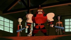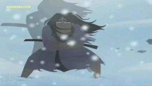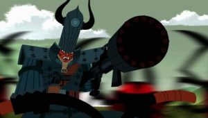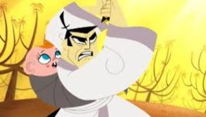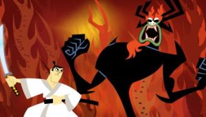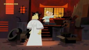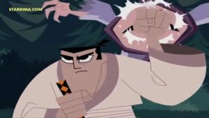 مع سيف والده السحري كاتانا، تحدي أكو إلى مبارزة ليهزم الشرير, ومع ذلك قبل أن يتمكن جاك من ضربة الضربة القاتلة قام أكو بإنشاء بوابة الزمن ويرسل خصمه في المستقبل البعيد، وتوقع أنه سيكون قادرا على حشد قوة كافية للتعامل مع السامرائي في وقت لاحق.